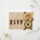 Vintage Adventure Wedding Response Postcard featuring a rope border, an antique compass, a dinosaur information plate and a distressed look digital art paper texture background. This cool wedding RSVP postcard is perfect for an archaeology adventure or museum themed wedding. Easy to customize, simply add your wedding details. Click "Customize It" to find more personalization options.