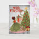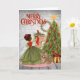 Vintage African American Christmas Card with woman trimming Christmas Tree