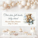Celebrate your little one’s arrival with this charming aviation-themed baby shower banner featuring the phrase “Clear skies, full hearts, baby ahead.” A sweet teddy bear pilot soars through watercolor clouds in a vintage airplane, creating a whimsical and heartwarming atmosphere. Personalized with the mom-to-be’s name and shower date, this large 2.5' x 6' banner makes a perfect statement backdrop for entryways, dessert tables, or photo ops. Ideal for boy or gender-neutral showers with a travel or adventure theme.