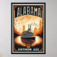 • This vintage-inspired Alabama travel poster features a classic riverboat cruising down a tranquil waterway. Musical notes float above the riverboat, capturing the spirit of Southern jazz culture. This poster brings to life the charm of Alabama's musical heritage and riverboat history, making it an ideal addition to any space that celebrates Southern culture.
