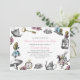 Sweet vintage Alice in Wonderland tea party invitation featuring Alice, the white rabbit, teapots, and pink roses, with a dainty pattern on the reverse. Personalize this design by changing the text, text colour, or background colour on the reverse.