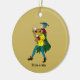 A Christmas tree ornament featuring a vintage-style illustration of Allan-a-dale from Robin Hood.