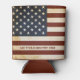 Vintage American Flag Personalized Can Cooler features red white and blue rustic style american flag and a name template.A perfect design for 4th of July/Independence day,memorial day or any patriotic event.Also great as gift.Please click the personalize button to customize it with your own name.