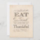 Elegant vintage style invitations to a thanksgiving dinner or any occasion to be grateful for. Text on the front reads "Eat, Drink and be Thankful." Text on the reverse is fully customizable. Beautiful antique finish evokes vintage American victorian style or the old West.