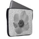 This awesome laptop bag features a beautiful and detailed photograph of an Anemone flower. The photograph has been artificially coloured making it a lovely monochrome image. The background consists of a grey pattern to further enhance the effect.