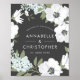 A beautiful wedding welcome sign feature a bountiful frame of watercolor white anemones, green leaves and delicate light blue flowers, on a dark grey background. Personalize with your names and wedding date.
