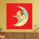 Vintage angel in a crescent moon wrapped canvas. Background colour can be customized.