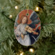 This oval ceramic Christmas holiday ornament has a vintage painting of an angel playing the violin.