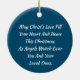 Lovely, vintage picture of an angel with message for "A Happy Christmas", is featured on this ceramic holiday ornament. Back of ornament reads, "May Christ's Love Fill Your Heart And Home This Christmas Time. As Angels Watch Over You And Your Loved Ones"! A pretty ornament to give as a gift or adorn your own tree with!