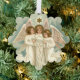 Lovely, vintage picture of three angels singing from a music book, is featured on this paper ornament card for Christmas. Angels are on the front of the paper ornament and on the back of the ornament is a message, "Today the angels sing praise to the new born baby, Christ the King". A wonderful card to send family and friends for Christmas time. Includes ribbon for hanging too.