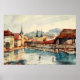 Vintage Antique Switzerland Lucerne Chapel Bridge Poster