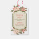 This beautiful apple blossom tag has a classic vintage feel. The tag features apple blossoms on the top and bottom of the decorative damask label. In the centre is decorative red text that reads "Thank You for Celebrating with Us". You can customize this tag with a name and date. The back of the tag has a coordinating green border with a white background for you to add a personal note.