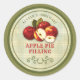 This beautiful Apple Pie Filling Label has a cozy vintage feel that will really make your canned goods stand out. The round apple pie label would look great on the lid or on the front of the jar. The design features a bunch of apples at the top and a place to add a name. The text on the label reads "homemade apple pie filling" in red with a flourish and below in green. The background is a distressed plaid, surrounded by a green border.