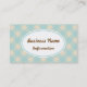 Aqua and cream gingham decorates this retro style business card. Customize this business card to suit your needs. The design is from original art. Use this stylish business card for a daycare, child care, nursery, bakery, cosmetologist, antiques, realtor, real estate, candy, auctions, hair stylist, salon, spa, dentist, musician, painter, etc...