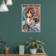 Our beautiful vintage poster print features the work of art nouveau painter Alphonse Mucha. Created in 1897, the advertising poster for private French railway company PLM was designed to promote the glamourous European holiday resorts of Monaco and Monte Carlo on the French Riviera. The painting shows a beautiful young woman seated under a bower of flowers in the shape of a peacock. There are little birds nesting among the flowers and in the background is a beautiful coast.