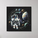 Surreal AI art depicting an astronaut floating in outer space with planets and moons. Hyper realistic comic book style astronaut in space.