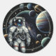 Surreal AI art depicting an astronaut floating in outer space. Hyper realistic comic book style astronaut in space.