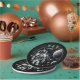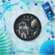 Space themed birthday party plates. Surreal AI art depicting an astronaut floating in outer space with planets and moons. Hyper realistic comic book style astronaut in space.