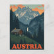 Bring the breathtaking beauty of the Austrian Alps to your home with this vintage-style magnet. It features a stunning illustration of a cozy mountain cabin nestled in a lush valley with snow-capped peaks and a waterfall in the background. This magnet is a perfect souvenir for anyone who loves Austria's majestic landscapes and outdoor adventures. It's a great keepsake to remember a trip or a gift for a friend who dreams of travelling.