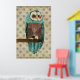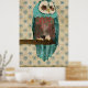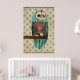 Vintage Azure & Blush Owl Art Poster
