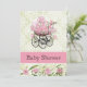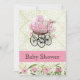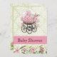 Pink and Green Baby Shower Invitation with Vintage Baby Carriage and Pink Roses