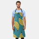 Vintage banana pattern, blue background. apron