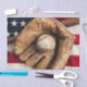 Vintage baseball, glove and bat on a vintage American flag