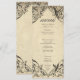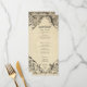 Elevate your gothic wedding with a Victorian-inspired wedding menu that exudes timeless elegance and mystery. Designed to resemble an antique book binding, this stunning design features intricate a black lacey filigree on an aged tan parchment background, evoking the charm of a bygone era. Let your love story unfold with a program as unforgettable as your day. Created by Simply Farmhouse Press.