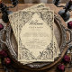 Elevate your gothic wedding with a Victorian-inspired wedding program that exudes timeless elegance and mystery. Designed to resemble an antique book binding, this stunning design features intricate a black lacey filigree on an aged tan parchment background, evoking the charm of a bygone era. Let your love story unfold with a program as unforgettable as your day. Created by Simply Farmhouse Press.