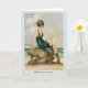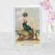 A vintage illustration of a flapper era bathing beauty posing on some rocks along the beach. She says fetchingly, "Won't You Join Me?" She wears a dark green bathing suit with matching bathing cap and stockings. The waves of the sea and the clouds in the blue sky are her background. This card is blank inside for your own message.