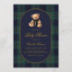 Celebrate your little one with this beautifully designed classic baby shower invitation featuring a rich plaid border and a charming teddy bear illustration. With its elegant typography and traditional style, this invitation is perfect for a refined, cozy, and timeless baby shower theme.