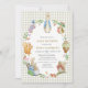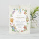 Step into the magical world of Beatrix Potter with this vintage-inspired baby shower invitation! Adorable watercolor Peter Rabbit sits proudly in a lush floral wreath surrounded by charming woodland friends—squirrels, owls, mice, bunnies, and birds—framed on a delicate light gingham background for that perfect cozy garden vibe.