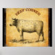 beef diagram with meat numbered cuts as displayed in old butcher stores