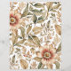 Vintage botanical design featuring detailed beige and green florals on a white background.