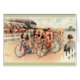 Bicycle race scene. A peloton of six cyclist cross the finish line in front of a crowded grandstand, observed by a referee. 1895.