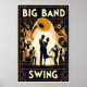 • Step back into the golden age of jazz with this vintage-inspired Big Band Swing Dance poster. Featuring a lively art deco design, this poster captures the elegance and energy of a classic swing dance scene. Perfect for jazz enthusiasts, music lovers, and those who appreciate retro style, this poster adds a touch of nostalgia and sophistication to any space. Ideal for home décor, music studios, and vintage-themed events.