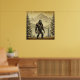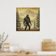 Vintage ai art with Bigfoot or Sasquatch in the tall Pine Trees with a Mountain background.