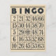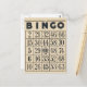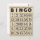 Vintage bingo game card graphic features black lettering on distressed paper background