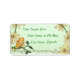 Beautiful antique vintage look wedding return address label design with a pastel mint green background with a decorative border and top scrolls. The bottom features pastel coloured flowers and a colourful bird perched on a branch. Beautiful vintage theme for all your wedding products.