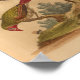 Vintage Bird Green Red Print