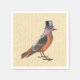 Add custom text to this purple and orange bird wearing a vintage top hat.