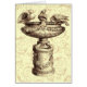 Vintage birdbath greeting card. Background colour can be customized.