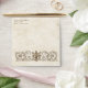 This elegant and sophisticated invitation envelope blends the best of tradition and the freshness of the contemporary. Mixing Vintage art elements and contemporary watercolor art work hand painted by Audrey Jeanne Roberts gives a beautiful and timeless quality to this invitation. Two Love birds guarding a beautiful blue egg amidst a elegant swirls, a crown and an antique etching frame. YOU MIGHT ALSO ENJOY: WEDDING INVITATIONS: