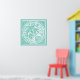 Vintage illustration teal coloured art nouveau animals design featuring several flying birds in the centre surrounded by swirls of wind or ocean waves with butterflies and stars in the corners.