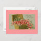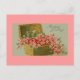 Vintage birthday card artwork displays an old fashioned basket of flowers in shades of pink and red. The card reads 'Birthday Greetings' in old tyme metallic gold script. Anyone that loves old fashioned art and vintage collectibles will enjoy this antique floral birthday design.