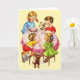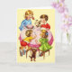 Retro / Vintage Birthday greeting card. Adorable children having a birthday celebration with their puppy and kitty!