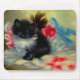 Vintage Black and White Kitten Painting Mouse Pad