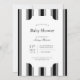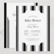 Classic, timeless black and white vertical stripe baby show invitation. Customizable font styles and layout, featuring a simple patterned backdrop with a clean, geometric stripe pattern. Perfect for unisex baby shower invites, baby boy shower invites, and retro baby shower invites.