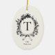 Vintage Black Botanical Monogram Ceramic Ornament
