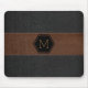 Vintage Black & Brown Leather Print Monogram Mouse Pad